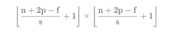 | ( n + 2 p ) × ( n + 2 p ) | f × f | ( n + 2 p − f + 1 ) × ( n + 2 p − f + 1 ) |