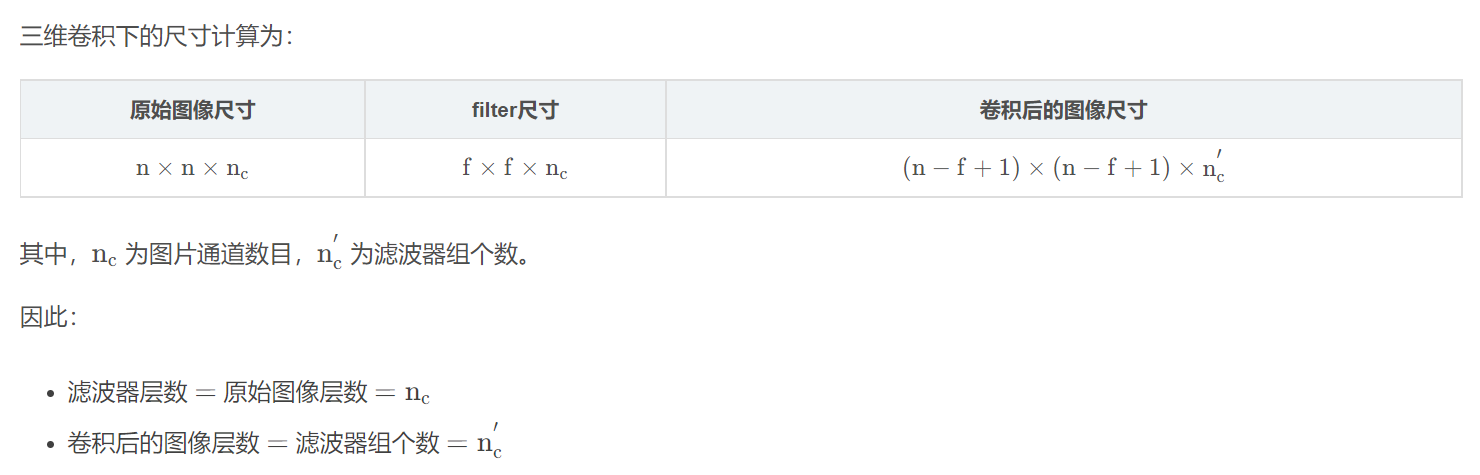 | 原始图像padding后尺寸 | filter尺寸 | 卷积后的图像尺寸 |